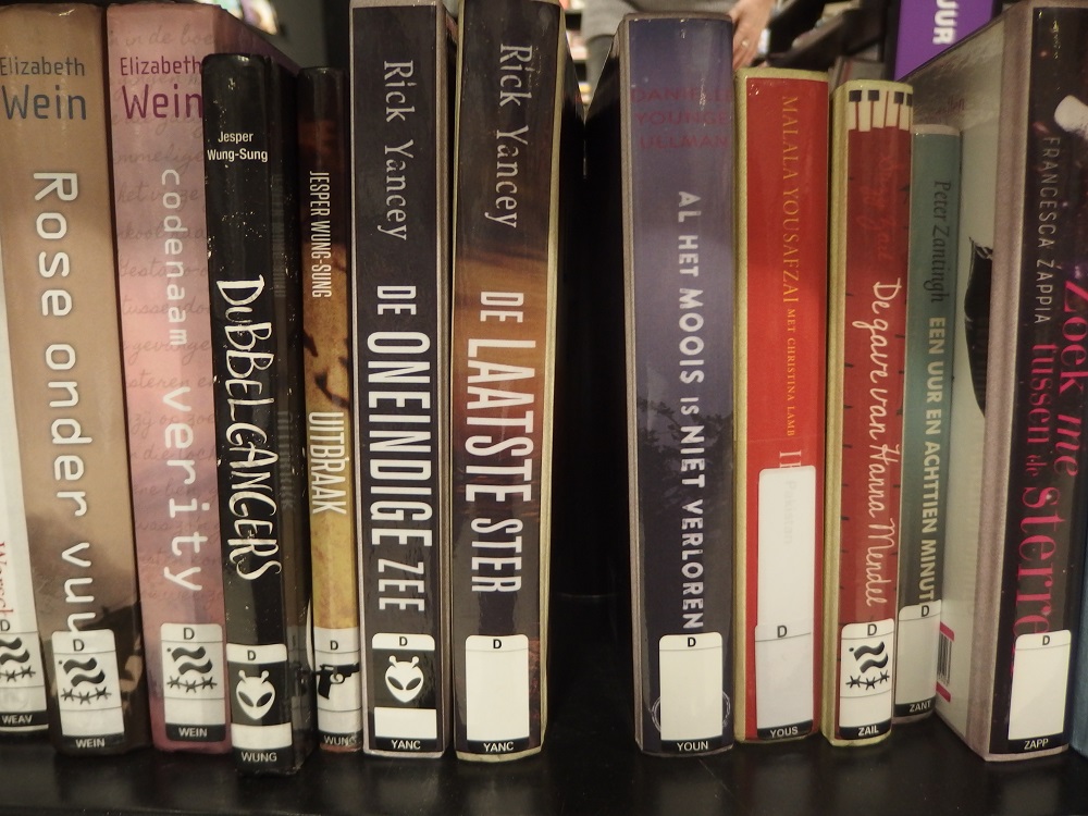 (Klik op de foto’s voor een grotere versie. Foto’s zijn geënsceneerd; de werkelijke dikte van het boek kan afwijken van de breedte van het gat. D-boeken zijn boeken voor 15 jaar en ouder).